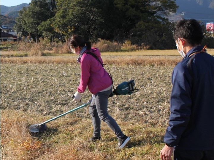 12月8日に、東臼杵北部地区農山漁村女性サポート協議会主催による、農作業の負担軽減に向け、アシストスーツや、草刈機及び運搬車などの充電式作業機械の体験会が行われました。農機メーカーから農業機械の操作方法の説明があった後、実際に体験が行われました。