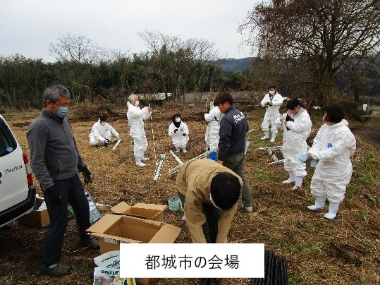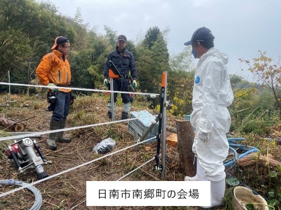 12月23日から24日にかけて、公益社団法人宮崎県畜産協会及び一般社団法人日本草地畜産種子協会主催の電気牧柵設置研修会が開催され、県内の肉用牛生産者と行政、資材メーカー等約50名が参加しました。1日目は、放牧を始めるに当たっての留意点や電気牧柵の構造、設置方法について座学研修を行い、2日目は、3カ所の放牧予定地を研修場所としてお借りし、放牧資材を販売するメーカー立会いの下、設置研修を行いました。