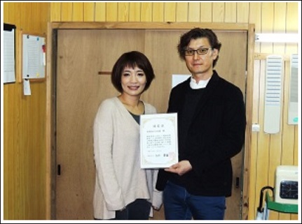 当日(12月14日)は、有機ハトムギを利用した加工食品の製造・販売事業で認定された「おたに家株式会社」(宮崎県西臼杵郡高千穂町)において代表取締役今村康薦様に手交しました。