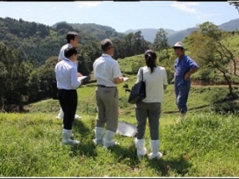 宮崎県拠点では昨年度、宮崎県立農業大学校の学生と意見交換を行いました。これが縁となり今年度は大学校OB等で、就農10年程度の30才前後の若手農業者と意見交換会を行いました。基盤整備や世代交代など地域の実情や課題等について意見が出されました。