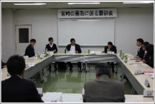 宮崎県農業の振興のために青年を中心に構成された「宮崎県SAP会議連合西臼杵地区」の会員など7名と県及び3町担当者ほか、内閣府地方創世推進事務局及び農林水産省農村振興局も交え、中山間地域における土地利用の課題や後継者(担い手)問題などについて多くの意見が出されました。