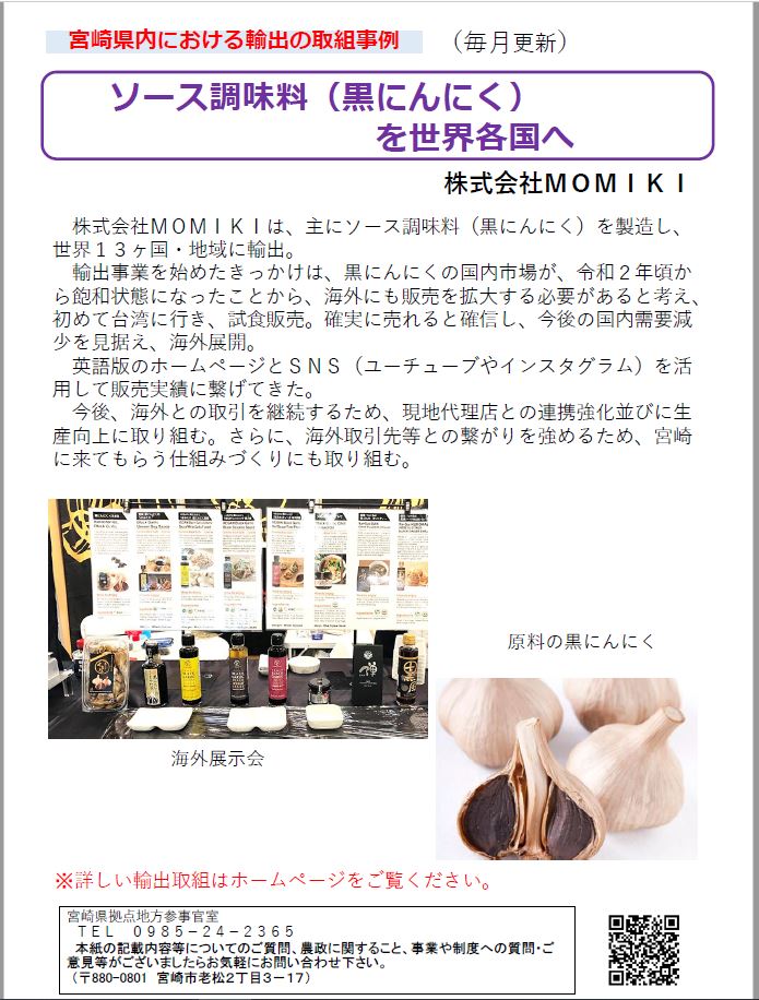 ‣ソース調味料(黒にんにく)を世界各国へ(株式会社MOMIKI)