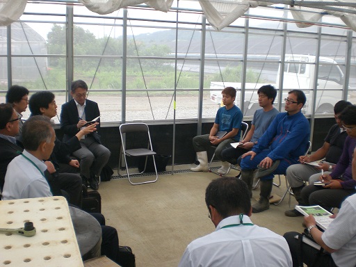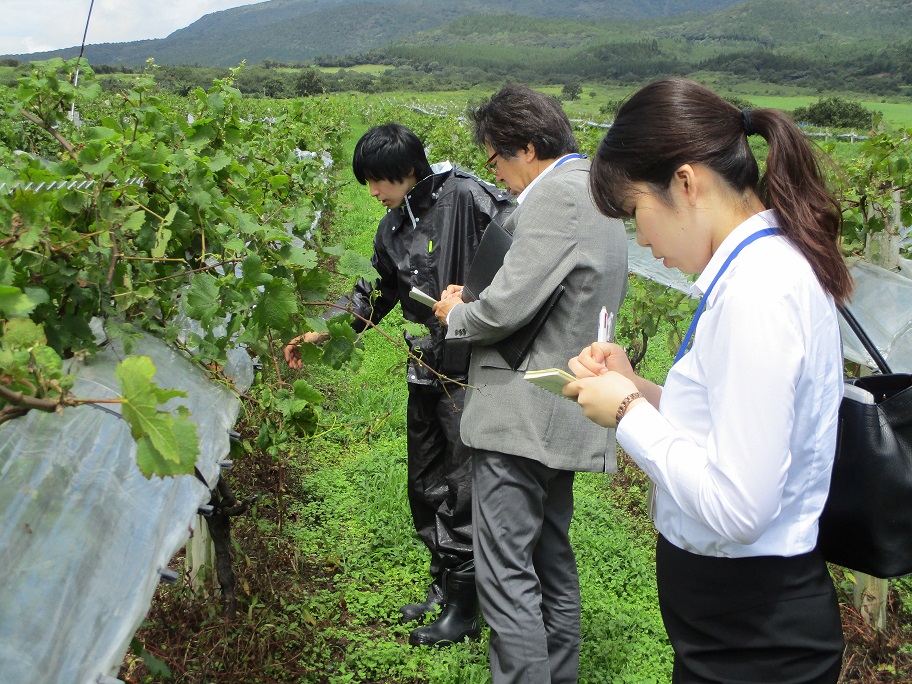 大分県農協安心院ぶどう部会の就農5年未満の若手生産者の方々と意見交換を行いました。宇佐市安心院町は九州有数のぶどうの産地で、現在国営緊急農地再編整備事業の対象地域にもなっています。輸出拡大に向けた現状や産地の維持など課題について意見が出されました。