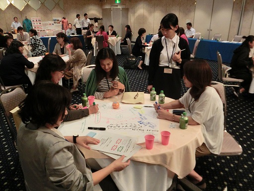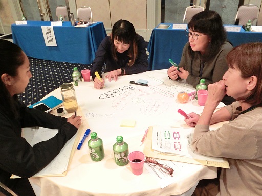 「女性農業者が考える今後の農業とは?」をテーマにワールドカフェ形式でワークショップを行い、和やかな雰囲気で語り合いました。