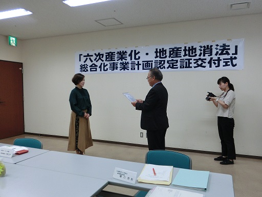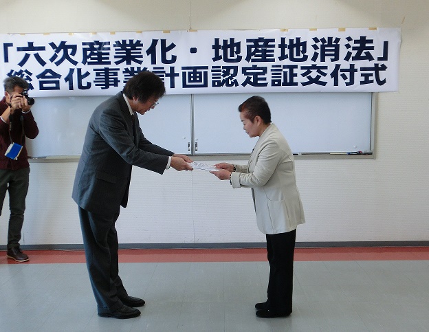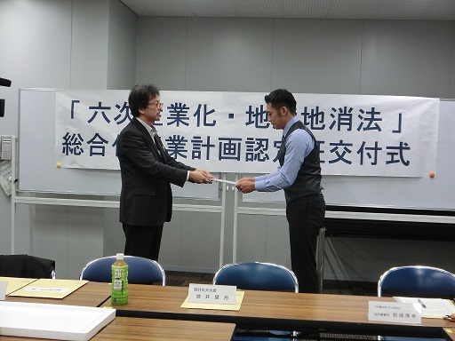 六次産業化・地産地消法に基づく総合化事業計画認定証交付式(10月1日)