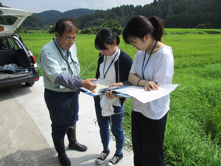 令和元年8月19日から30日までインターンシップ実習生2名を受け入れました。実習生は、農業法人、農福連携に取り組む社会福祉法人、女性農業者等との意見交換や水稲の作柄調査等に出向きました。また県拠点が開催した「女性農業者交流会」の準備や当日の運営、ワークショップにも関わり、最終日には県拠点において2名による実習成果発表が行われました。