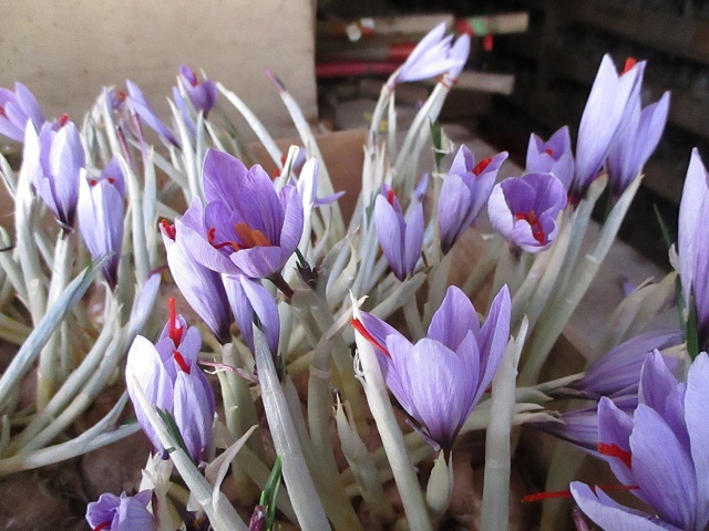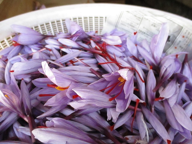 サフランの収穫作業が最盛期(11月11日)