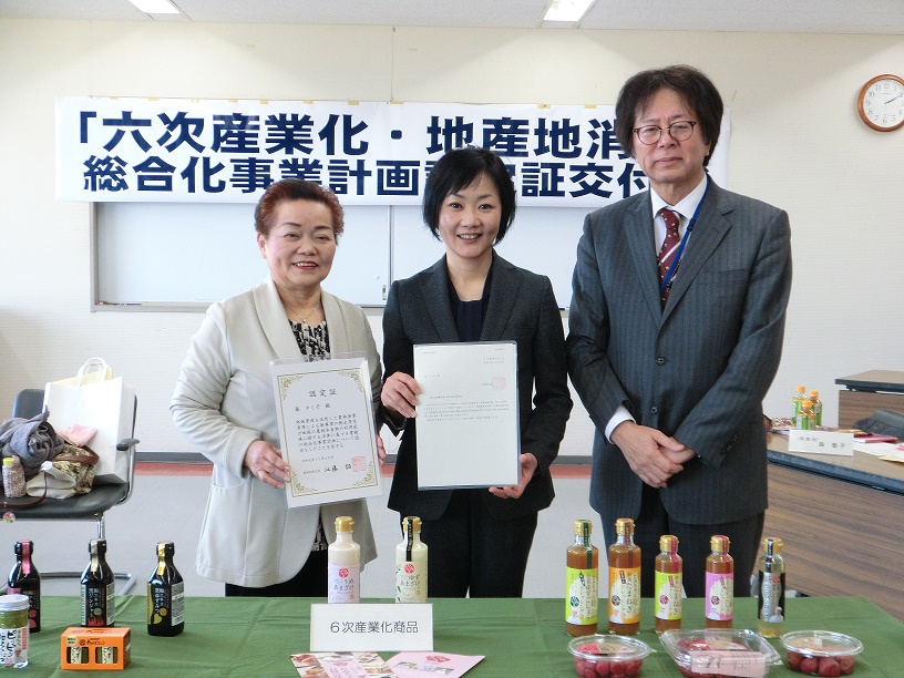 六次産業化・地産地消法に基づく総合化事業計画認定証交付式(4月10日)