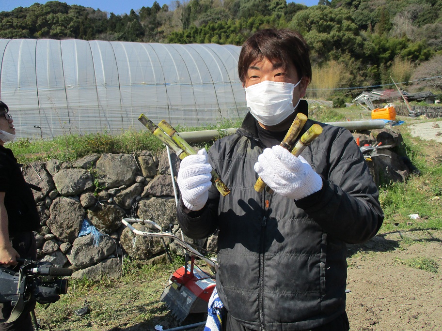 大分県拠点では、「現場と共に解決する」業務の一環として、耕作放棄地の解消等に向けたさとうきびの試験栽培を支援しています。令和2年3月25日、別府市と日出町の2か所のほ場でさとうきび苗の植え付けが行われました。