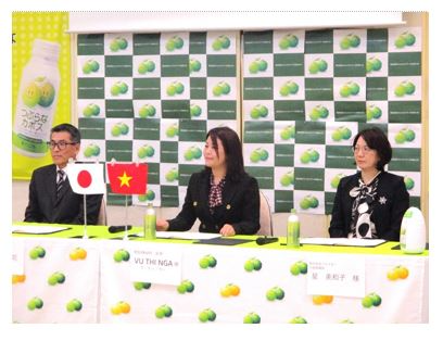 かぼす飲料等のベトナム国内独占販売覚書調印式に出席・・・(株)ジェイエイフーズおおいた(4月9日)別府市