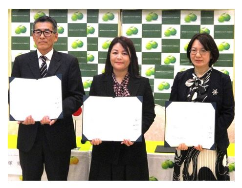 別府市で「(株)ジェイエイフーズおおいた」、「エコフルーツ輸出入(株)」及び「(株)フォスター」の3者による覚書調印式が行われました。大分でお馴染みの県産かぼす等を使用した飲料について、ベトナムで独占販売する契約が締結され、継続的にベトナムへ輸出されます。年間で2万ケース(60万本)の輸出を目指しています。同飲料の継続的な輸出は初めてであり、ベトナムで評価されれば、他国への輸出にも挑戦したいとのことです。