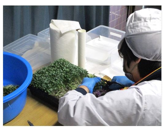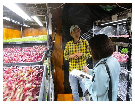 日出町で、ノウフクJASを取得した合同会社 Farm Samと意見交換を行いました。ここでは室内で8種類のマイクログリーンズ栽培を行っており、トレーへの土入れ、種まきから収穫までのほぼ全工程を就労継続支援B型事業所の利用者が担っています。マイクログリーンズ栽培にはいくつかの工程があることから適性を見出しやすく、室内での作業ということもあり、就労支援ととても相性が良いとのこと。利用者から作業環境の改善提案もあり、「今では僕よりも種まきが早いんですよ。」とにこやかに話してくれました。これからマイクログリーンズの知名度アップや販路拡を通じ、大分県の最低賃金並みの工賃向上を目指したいと意気込みを語ってくれました。