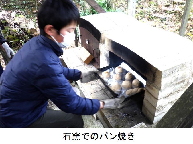 食育関係では、地域の小学生とその保護者を対象に、海水で塩作り、麦作りから石臼での小麦粉作り、石釜でのパン焼き等自然体験や農業体験から自然の大切さを考える「四季をまるごと体験ecoスクール」、森林を活用したドングリ工作・苗木作り、川を活用したネイチャーゲーム・生き物調査等、植物観察と山菜料理作りを行う「体験型環境学習」、放置され荒廃した竹林を広葉樹の林に復元する「森づくり」の活動を行っています。
