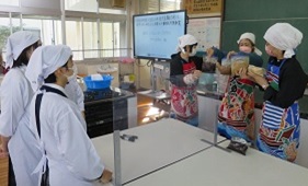 高等学校家庭科の学習は多岐にわたります。熊本県高等学校家庭科教育は、その中でも、「食育活動」の一環として、郷土料理の講習や県産米粉を活用した料理講習会などを実施しています。