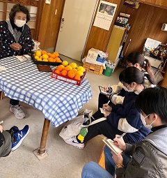 熊本県立大学の学生グループ【SalVege (サルべジ)~規格外野菜を救い隊~】は、熊本県内の生産者をめぐって、規格外野菜の普及活動を行っています。今年度は「芦北町」にスポットを当て、「農家さんマップ」を作成する活動を行いました。芦北で初めて甘夏を栽培した鶴田有機農園のみかんは、長年農薬を使わず栽培され、天皇に献上されたりG7サミットで振る舞われたこともあるそうです!訪問した学生もおいしいみかんを試食しながら、環境にやさしい有機栽培について学びました。