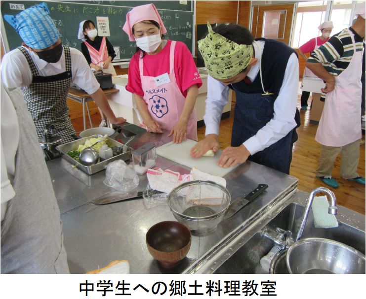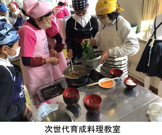また、地域の小学生・中学生・高校生に郷土の食材やだご汁、いきなり団子などの郷土料理を伝える活動に特に力を入れています。