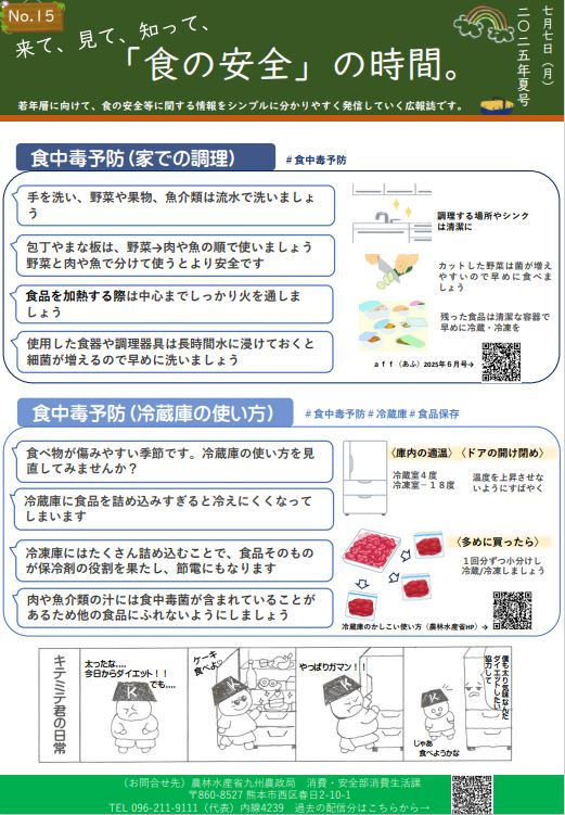 食の安全に関する情報、九州農政局消費・安全部からのお知らせなど幅広い世代へ向けた情報誌です。