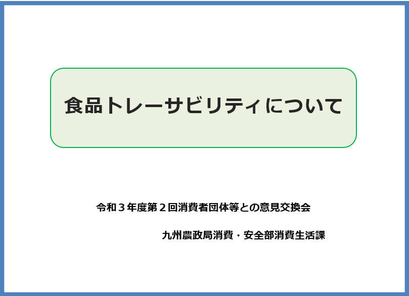 九州農政局では、食品安全に係る施策や消費者の方々の関心のあるテーマについて、消費者団体等の皆様との意見交換会を開催しています。