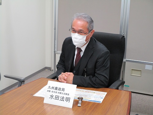 新型コロナウイルス感染症の感染拡大防止のため、九州農政局消費・安全部長、消費・安全管理官、消費生活課長につきましてはwebで参加しました。