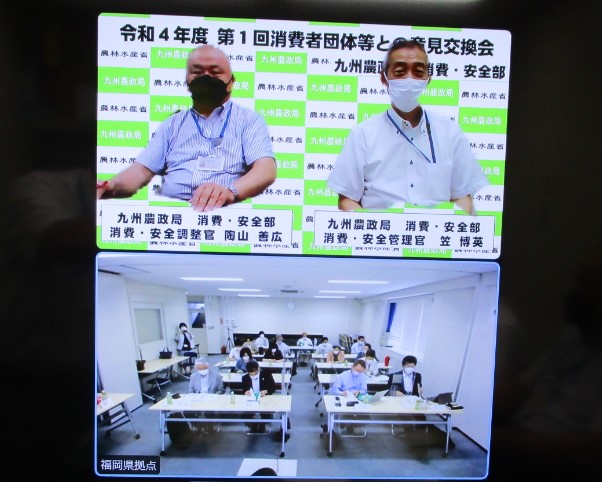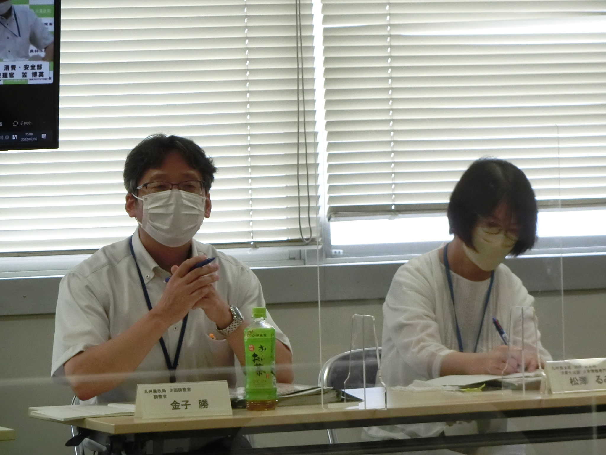 新型コロナウイルス感染症の感染拡大防止のため、九州農政局消費・安全調整官、消費・安全管理官につきましてはwebで参加しました。