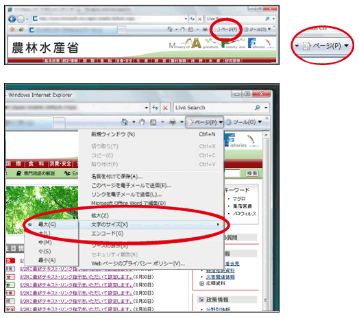 ブラウザ(あなたが現在このページをご覧になっているソフト)の文字の大きさを変更する方法の紹介