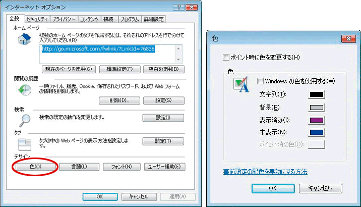 Webページの配色の設定方法の紹介(インターネットエクスプローラー7のみ)