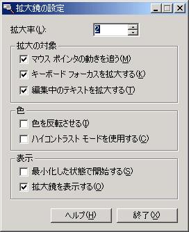 Microsoft製のWindows98以降の製品には、視覚に障害がある方のために、ユーザー補助ツールが用意されています。