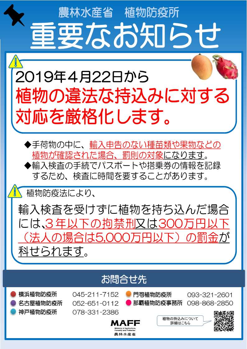 - 税関検査の前に必ず植物検疫カウンターにお越し下さい。