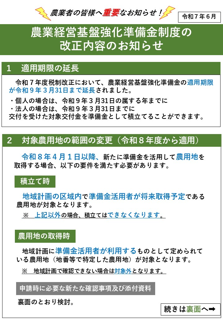 農業経営基盤強化準備金制度の改正内容のお知らせ