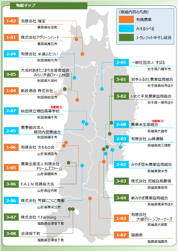既に環境負荷低減に取り組んでいる地域にも、これから取り組んでみようと考えている地域にも、その取組内容を検討するにあたって参考として活用いただくことを目的に、東北地方の水稲生産において環境負荷低減に取り組む方々の事例をまとめました。事例集も参考に、『持続可能な水稲生産』に取り組んでみませんか?