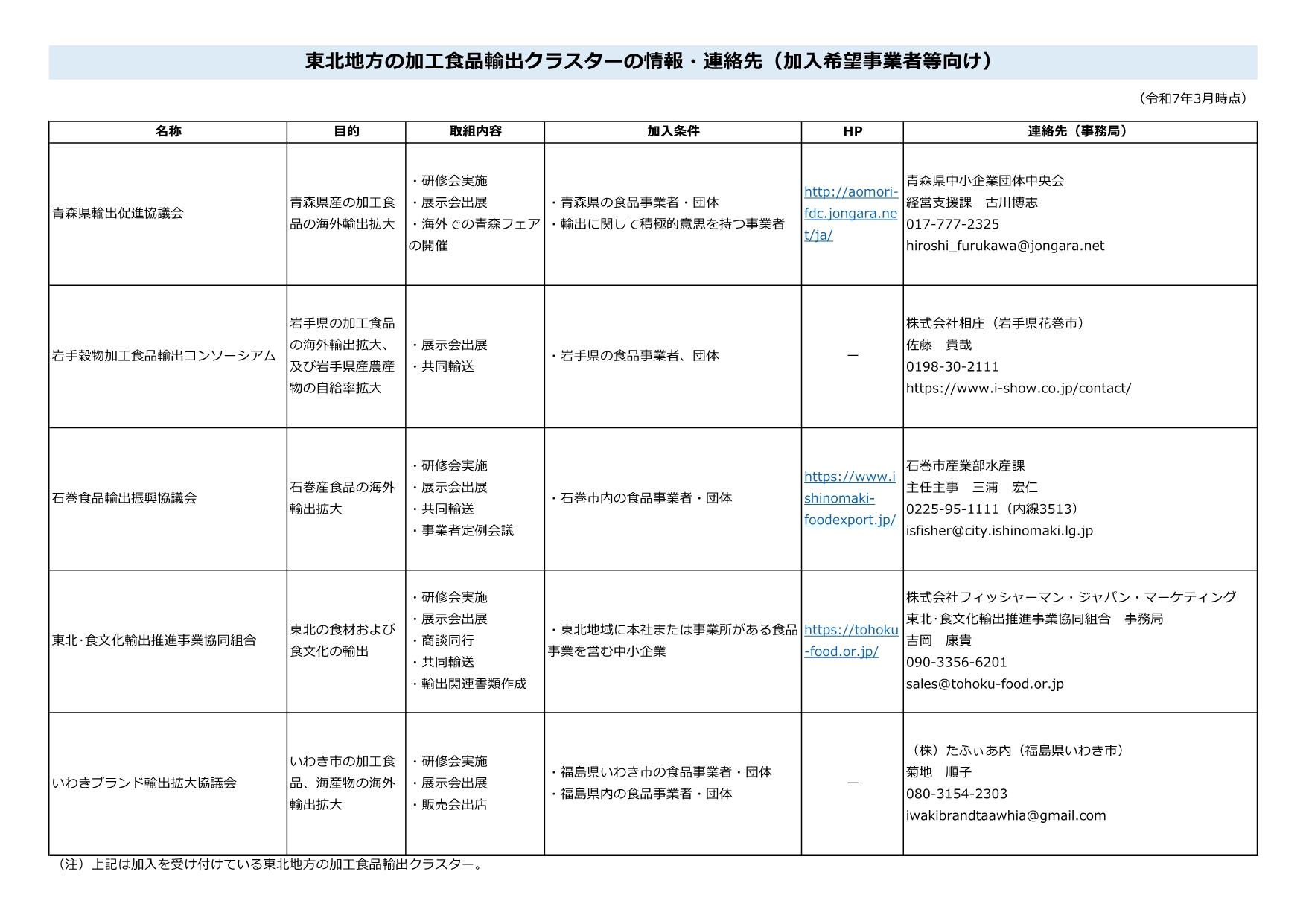 東北地方の加工食品輸出クラスターのうち、新規加入の募集を行っているクラスターについての情報を掲載しています。