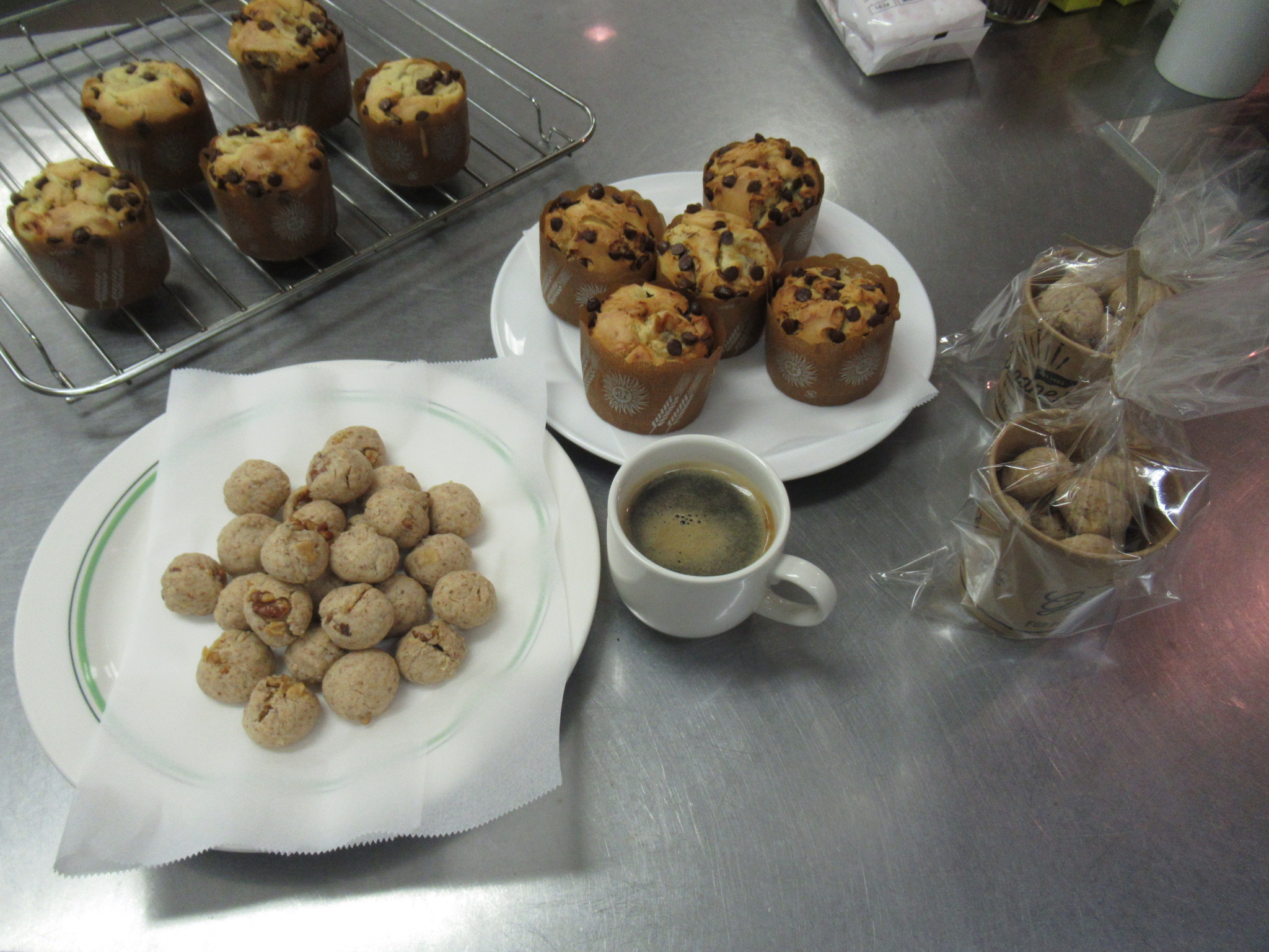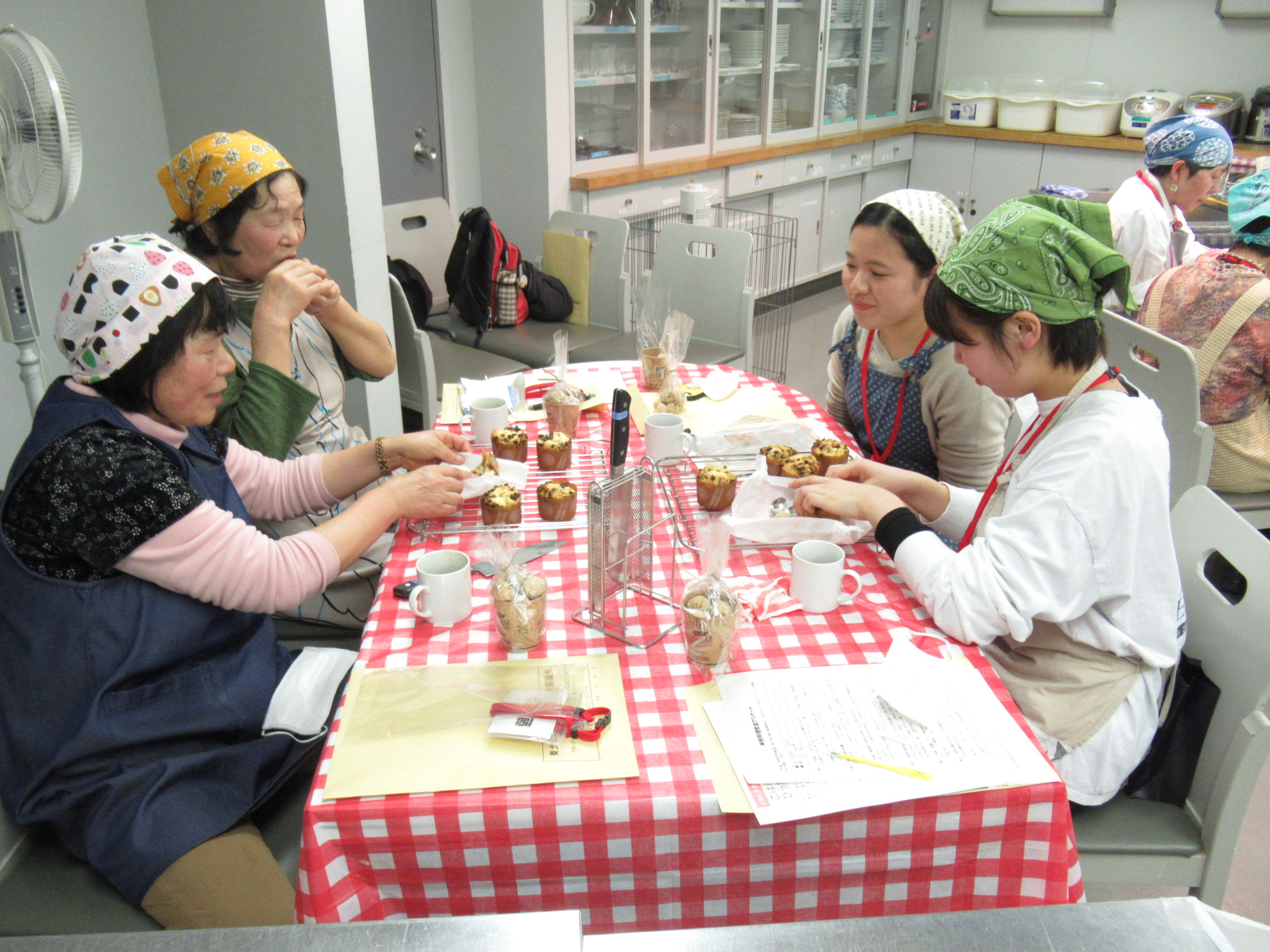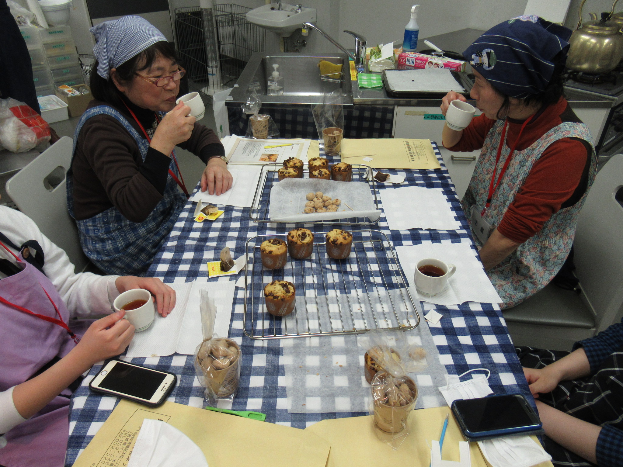 | ナッツのクッキーとマフィン | 試食開始です | 世間話をしながらいただきました |