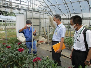 5月27日、羽後町で花きの周年栽培を行っている佐藤義和さん・美穂さんご夫妻宅にお邪魔し、意見交換を行いました。