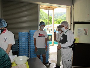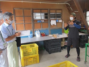 担当の先生方からは、生徒が考えた作業改善等のアイデアや地元生産者、販売業者の皆さんとの連携などについてお話を伺い、生徒からは作業の意気込みなどをお聞きしました。