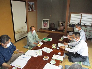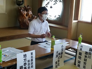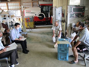 6月24日、潟上市の飯田川公民館において、飯田川酒米研究会の会員と意見交換を行いました。