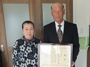 | 局長賞(単収の部)の授与式 | 受賞後の小松田光二氏と奥様 |
