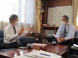 | 意見交換の様子1 | 意見交換の様子2 | (左から)岩井真二代表、岩井茂治会長 |