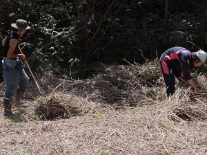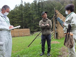 | 意見交換の様子 | 古関さん(左)と加藤さん(右) | 除草作業をする古関さん(令和3年5月撮影) |