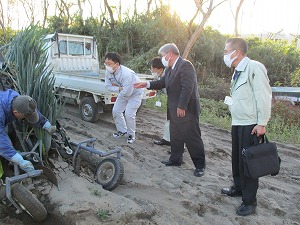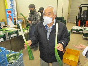 先方から、農業技術センターで研修を受けた人がねぎを中心として新規就農している事例や、市内のねぎ生産者数は高齢等による離農者と新規就農者がうまくバランスがとれていて安定していること、また、新規就農者は農地確保に大変苦労していることなどの話がありました。
