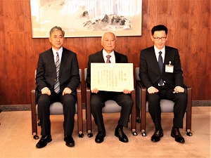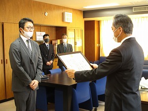 | 局長賞(増収の部)の授与式 | (写真左から)藤田地方参事官、佐藤範和氏 |