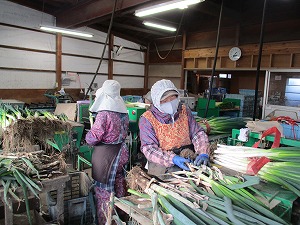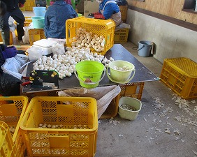 また、にんにくは初夏に収穫した物を冷蔵施設で乾燥調製することで通年出荷が可能となり、冬場もにんにくの皮むき等の調製作業が必要になるため、夏場の枝豆の収穫・出荷作業と合わせて従業員の周年雇用にも貢献しています。