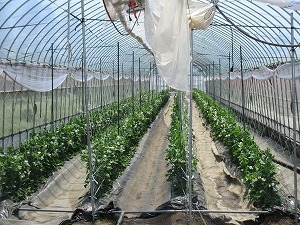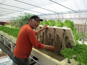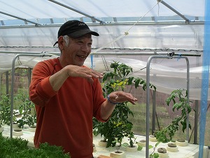 同園は、耕作放棄地だった土地に全く知識の無かった野菜の水耕栽培の設備を整備し、竹内代表がほぼお一人でレタス、トマト、スティックブロッコリー等の生産を行っています。