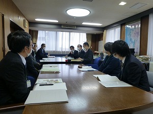 当方から「米の需給状況」や「みどりの食料システム戦略」などについて説明したところ、先方からは「水田リノベーション事業」や「みどりの食料システム戦略」に関する質問や意見「大雪被害」に対する支援の要望などがあり、活発な意見交換となりました。