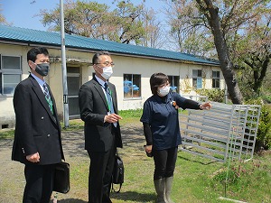 6月1日、にかほ市にある「きさかたグリーンファーム」において、竹内代表と意見交換を行いました。