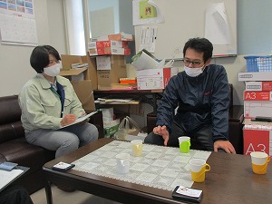 5月28日、潟上市にある有限会社鼎家(かなえや)において、米田代表取締役と意見交換を行いました。