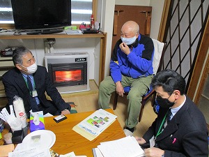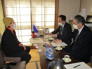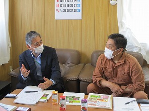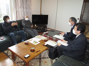 12月16日、大潟村の有限会社サンファーム取締役会長の岩井茂治さん、代表取締役の岩井真二さんのご自宅に伺い、意見交換を行いました。