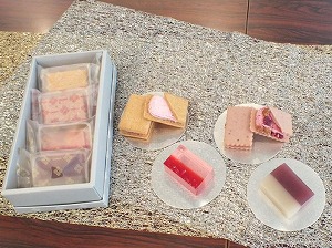 | 佐々木雄幸氏(左)への認定書交付 | 秋田産ラズベリーを使った試作中の「WA・GA・SHI」 | 佐々木雄幸氏(左)、佐々木幸生代表取締役(中央)と関係者の皆さん |