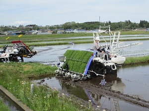 三種町農業再生協議会主催の直進アシスト田植機実演会に参加しました(5月18日)