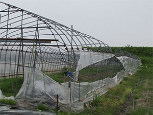 佐藤さんは、今冬の大雪により、17棟中7棟のハウスが被害(うち、4棟は全壊)を受けました。復旧途中の施設や出荷中のハウスを見学し、被害の状況や復旧にあたっての課題などについてお話を伺いました。