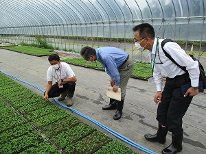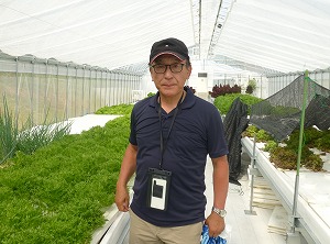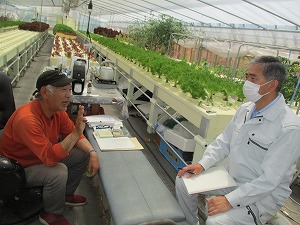 代表からは、販売先との情報交換によりよい刺激を受けていること、水耕栽培のメリットや課題などについてお話を伺いました。